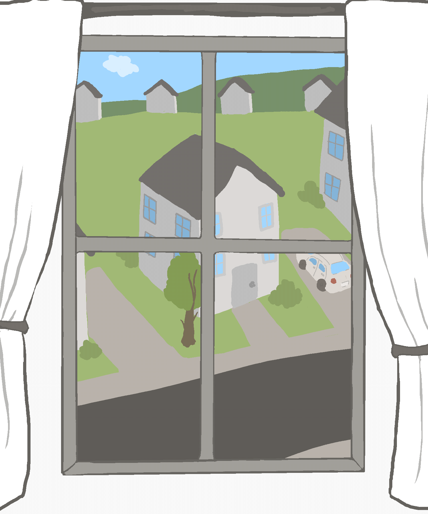 You lean forward to tug on the window to see if you can open it. It is locked, but you can’t find the latch anywhere. The spot where it should be, on the sill, attached to the bottom of the windowpane, was totally smooth. It reminds you of the wall where the front door should be.